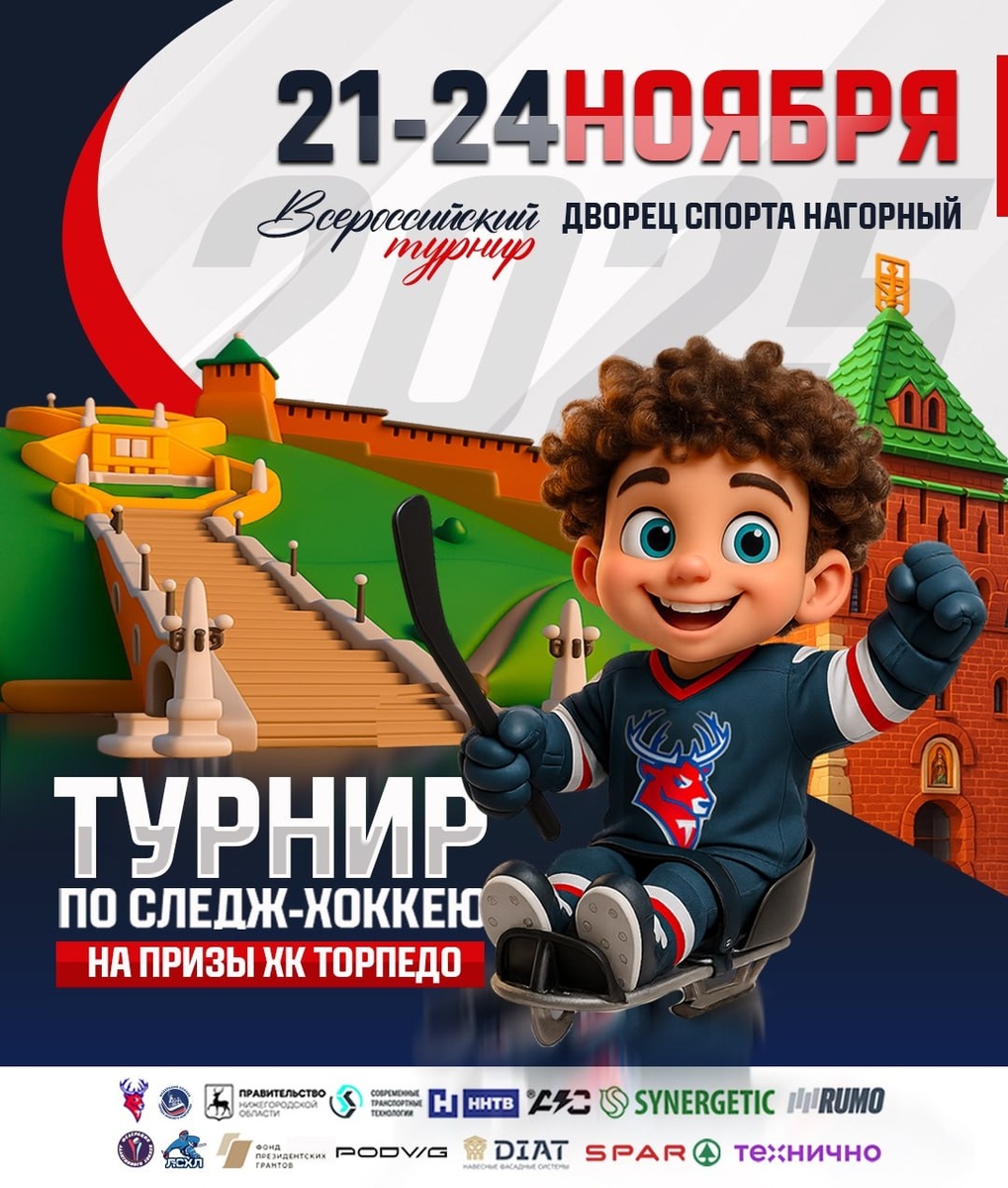 🔥 21–24 ноября в Нижнем Новгороде пройдет шестой Всероссийский турнир на призы «Торпедо»! На лед выйдут 23 команды из 14 городов! 👏 Нижегородский регион представят четыре команды: «Торпедо-Следж», «Чайка-Следж», «Окские Стрижи» и «Борский Медведь». Матчи пройдут в пяти дивизионах на четырех аренах: «Нагорный», «Юность», «РЦАВС» и ФОК «Ока» 👀 Турнир проходит при поддержке Правительства Нижегородской области и ХК «Торпедо» 🥳