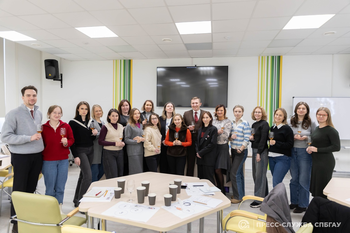 🍷 Изучаем российское вино в СПбГАУ! В СПбГАУ прошел третий образовательный интенсив «Российское Вино». 🎓 Главным спикером стала Наталья Большакова — президент Петербургской Ассоциации Сомелье и победитель «Russian Wine Trophy-2024». 🗣️ Участники обсудили актуальные тренды, получили новые знания и, конечно, продегустировали лучшие образцы. В программе также выступила преподаватель СПбГАУ Анна Рачеева. ✨ Интенсив в очередной раз доказал: российское виноделие — это перспективно, интересно и вкусно! Мероприятие укрепило связь между наукой и винной индустрией.