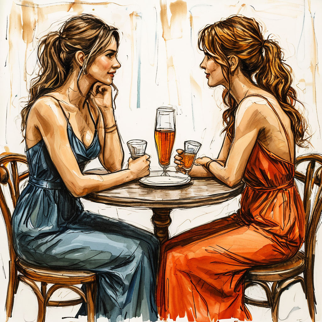 Выбрав наиболее подходящий момент, когда большинство мужчин, а среди них и Артём, вышли курить на улицу, Вера решительно встала. Она подошла к тому столу, где сидела «шутница», и спокойно, непринуждённо присела на свободный стул рядом с ней. Девушка подняла голову, и в её глазах мелькнул испуг, когда она увидела Веру.