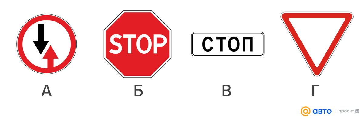 Все мы с вами, ну или почти все, опытные автомобилисты, хорошо знающие где, как и с какой скоростью нужно ездить. И, конечно же, где нельзя. Мы помним, какие штрафы и за что полагаются водителям, где главные и второстепенные дороги, кто и кому должен уступать при проезде тех или иных перекрестков. Однако все ли помнят, что далеко не перед любым предупреждающим или запрещающим знаком водитель обязан останавливаться? Перед каким или перед какими из изображенных выше дорожных знаков и дополнительных информационных табличек это следует делать? Если вдруг правильный ответ никак не приходит к вам в голову - не отчаивайтесь. Мы подготовили его и все необходимые подробные объяснения. Внимание: ниже есть правильный ответ Правильный ответ: Только Б Только знак «Б» — 2.5 «Движение без остановки запрещено» — требует обязательной остановки. Знак устанавливается или у пересечения проезжих частей (случай 1), или у ж/д. переезда, или карантинного поста (случай 2). Знак «А» — 2.6 «Преимущество встречно