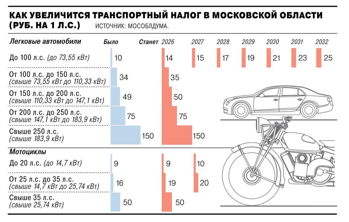 🔸В Московской области транспортный налог поэтапно вырастет в 2,5 раза