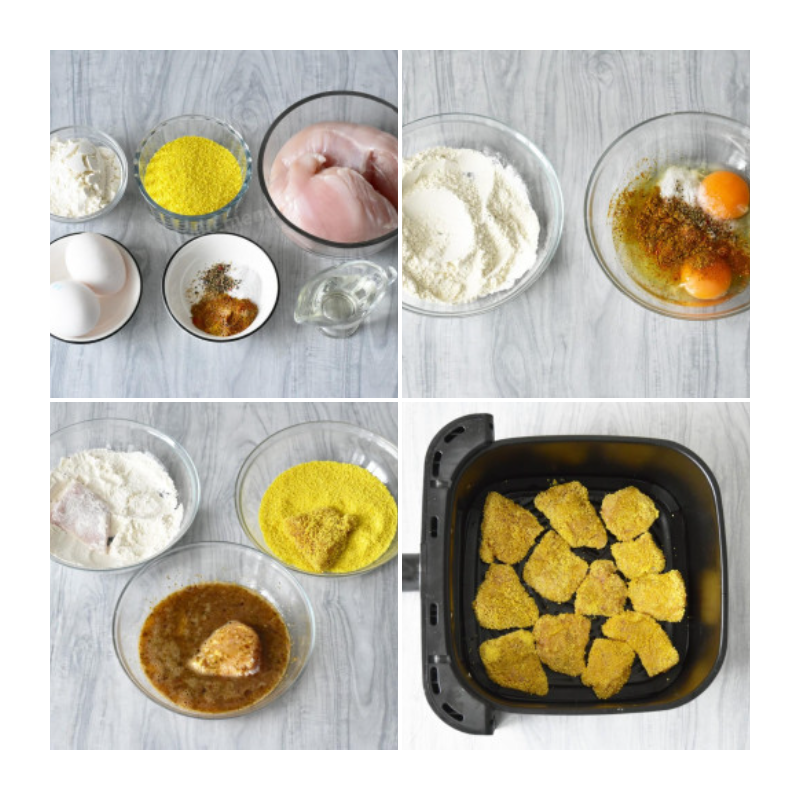 Для приготовления домашних наггетсов в аэрогриле вам понадобятся следующие ингредиенты: