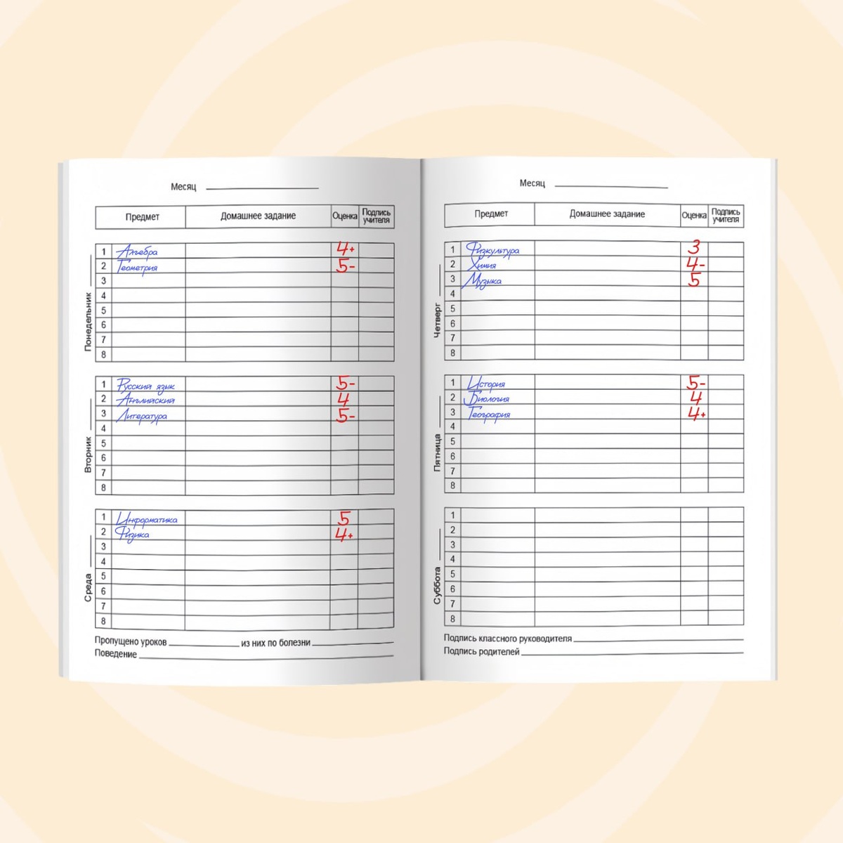 Это школьный дневник Фокса 😎 Кидайте в комментариях оценки по предметам — а мы поставим среднее значение в дневник Фоксу и заменим карточку. То, как учится Фокс, зависит от вас 😅