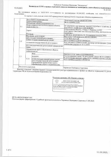 Название: Должник: Давудов Р.А., Собственник: Давудов Р.А. Лот: Земельный участок (земли населенных пунктов, для ведения личного подсобного хозяйства), площадь 1500 кв.м., кадастровый номер: 66:21:1204002:1324, г. Ревда, п. Ледянка, уч. 939, н/ц: 216800 р, з-к: 216 р, код: 0014, рег.№ 47-2809/25 Канал: Госземля Свердловская область Область: обл Свердловская Район: м.о. Ревда Населенный пункт: г Ревда, п. Ледянка, уч. 939 Локация: Смотреть на карте ВРИ: Для ведения личного подсобного хозяйства (приусадебный земельный участок) Кадастровый номер: 66:21:1204002:1324 Кадастровая стоимость: - Вид сделки: Продажа Площадь: 1500 м² Начальная цена: 216800.00 руб. Дата завершения: 08.12.2025 Подробнее: ГИС ТОРГИ #госземля #земляотгосударства #земля #земельныйучасток #земельныеторги #торги #аукцион #продажаземли #продажа #свердловскаяобласть