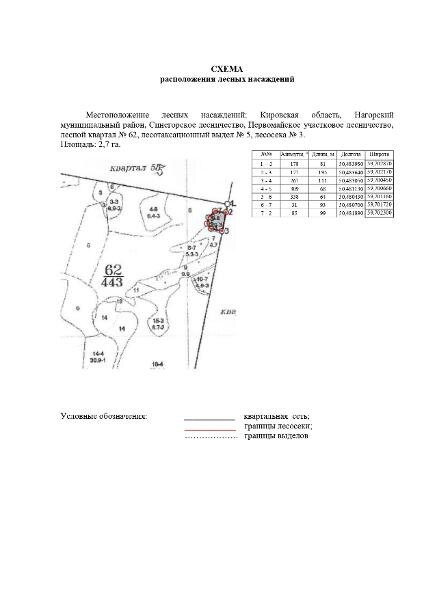 Название: Местоположение лесных насаждений: Кировская область, Нагорский муниципальный район, Синегорское лесничество, Первомайское