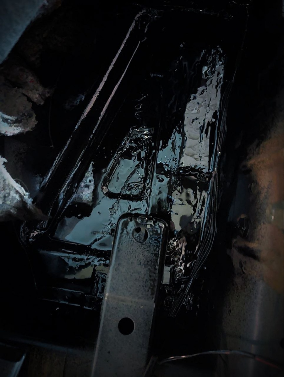 ➡️после завершения сварочных работ тщательно обработали днище автомобиля специальным антикоррозионным составом;