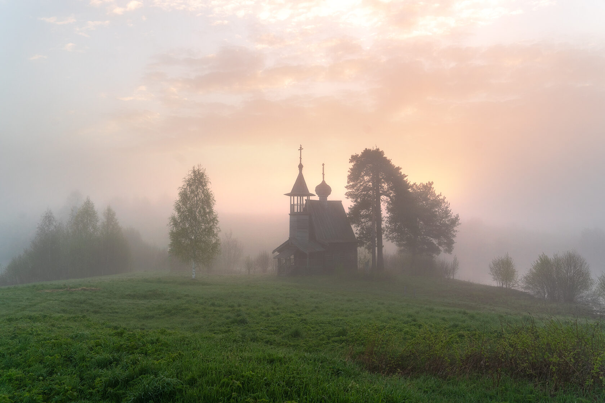 Плывешь по Кенозеру в ноябре — и понимаешь, что кинематографичность не нуждается в солнце. Неподвижное небо, черный лес, заброшенные деревни с пятью домами максимум. Это то состояние, которое американцы называют moody и платят режиссерам миллионы за то, чтобы его поймать. Здесь оно просто существует. Катер медленно подходит к берегу Рыжково, и вас встречает водитель Иван с ключом к деревянной часовне. Это главное отличие туризма на Кенозере от обычных экскурсионных маршрутов: храмы здесь открывают специально для вас. Не для группы, не по расписанию — именно для вас. Это создает ощущение причастности к чему-то большему, что вам доверили ключ от истории. Внутри потолок покрыт «небесами» — сотни дощечек-граней с иконами в центре. Это главный визуальный код Русского Севера, и в Кенозерье их больше, чем где-либо еще. Но половина из них — репродукции. В нулевые годы сюда хлынул поток туристов, среди которых оказались охотники за древностями. Начали пропадать иконы, деревянные кресты, фраг