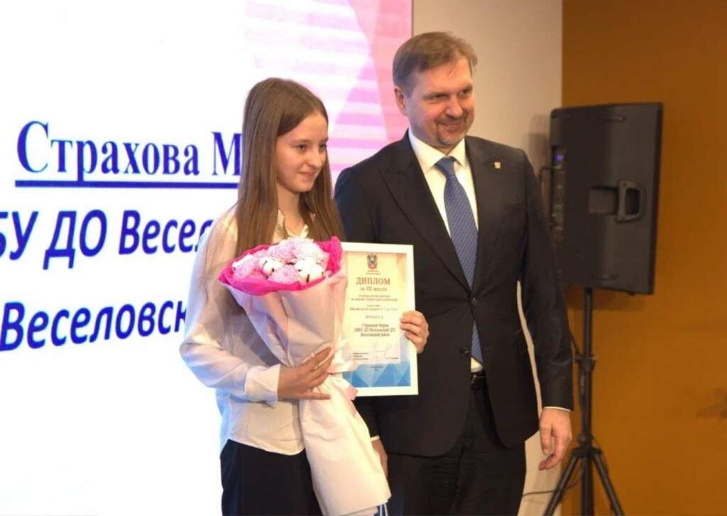 20 ноября в Ростове-на-Дону состоялась ежегодная региональная конференция по защите прав потребителей. В рамках мероприятия прошла выставка рисунков и творческих работ, посвященная этой важной теме, на которой были представлены работы учащихся из разных уголков Ростовской области. Особенно приятно отметить, что на выставке блистали и представители нашего Веселовского района! Юные художники представили свои работы, демонстрируя понимание и интерес к защите прав потребителей. И мы с гордостью сообщаем, что обучающаяся объединения «Школа юного дизайнера» Веселовского Центра творчества Мария Страхова заняла 3 место в конкурсе детских рисунков по тематике «Защита прав потребителей» в категории «Рисунки детей в возрасте от 12 до 14 лет». Ее талант и творческий подход к представленной теме не оставили равнодушными членов жюри. Первый заместитель Губернатора Ростовской области Алексей Николаевич Господарев лично вручил Марии заслуженный Диплом победителя, прекрасный букет и ценный приз. Это п
