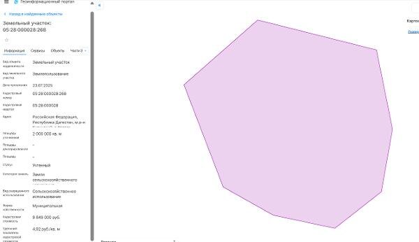 Название: право на заключение договора аренды земельного участка категории земель сельскохозяйственного назначения с кадастровым номером 05:28:000028:268, площадью 2000000 кв.м., адрес: Республика Дагестан, м.р-н Кулинский, с.п. село Хосрех, с видом разрешенного использования - для сельскохозяйственного использования Канал: Госземля Республика Дагестан Область: - Район: - Населенный пункт: - Локация: Смотреть на карте ВРИ: Сельскохозяйственное использование Кадастровый номер: 05:28:000028:268 Кадастровая стоимость: - Вид сделки: Аренда Площадь: 2000000 м² Начальная цена: 61600.00 руб. Дата завершения: 01.12.2025 Подробнее: ГИС ТОРГИ #госземля #земляотгосударства #земля #земельныйучасток #земельныеторги #торги #аукцион #арендаземли #аренда #республикадагестан