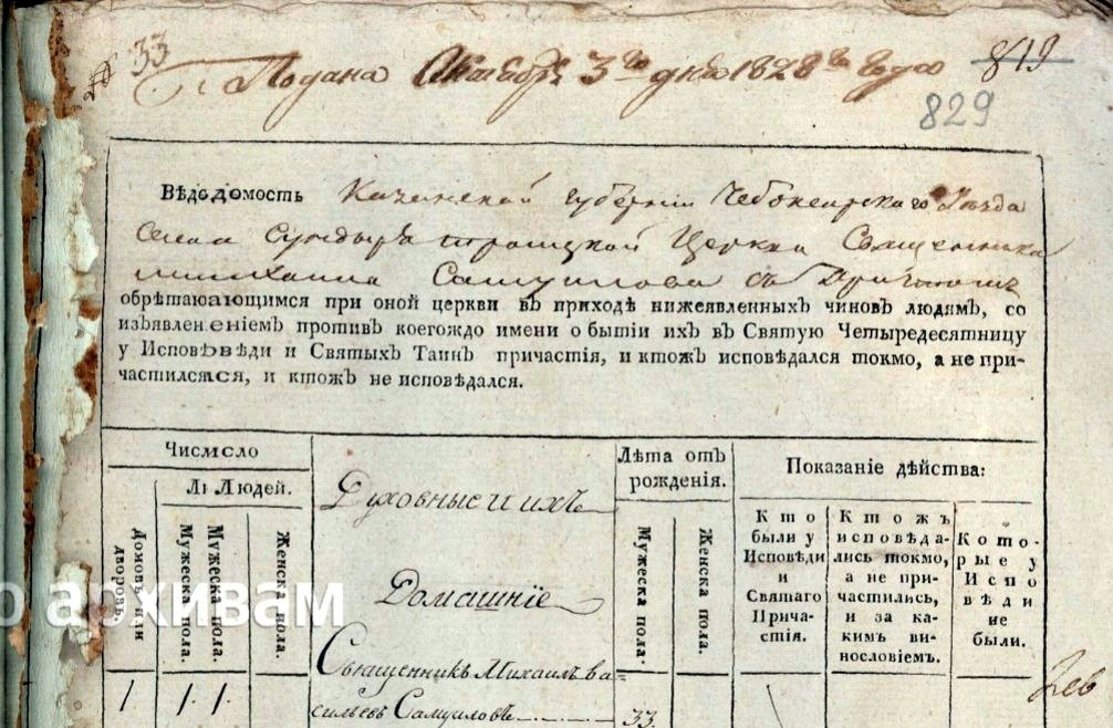 1828 год. Село Сундырь. Чебоксарский уезд. Коротков Козьма Захарович.
