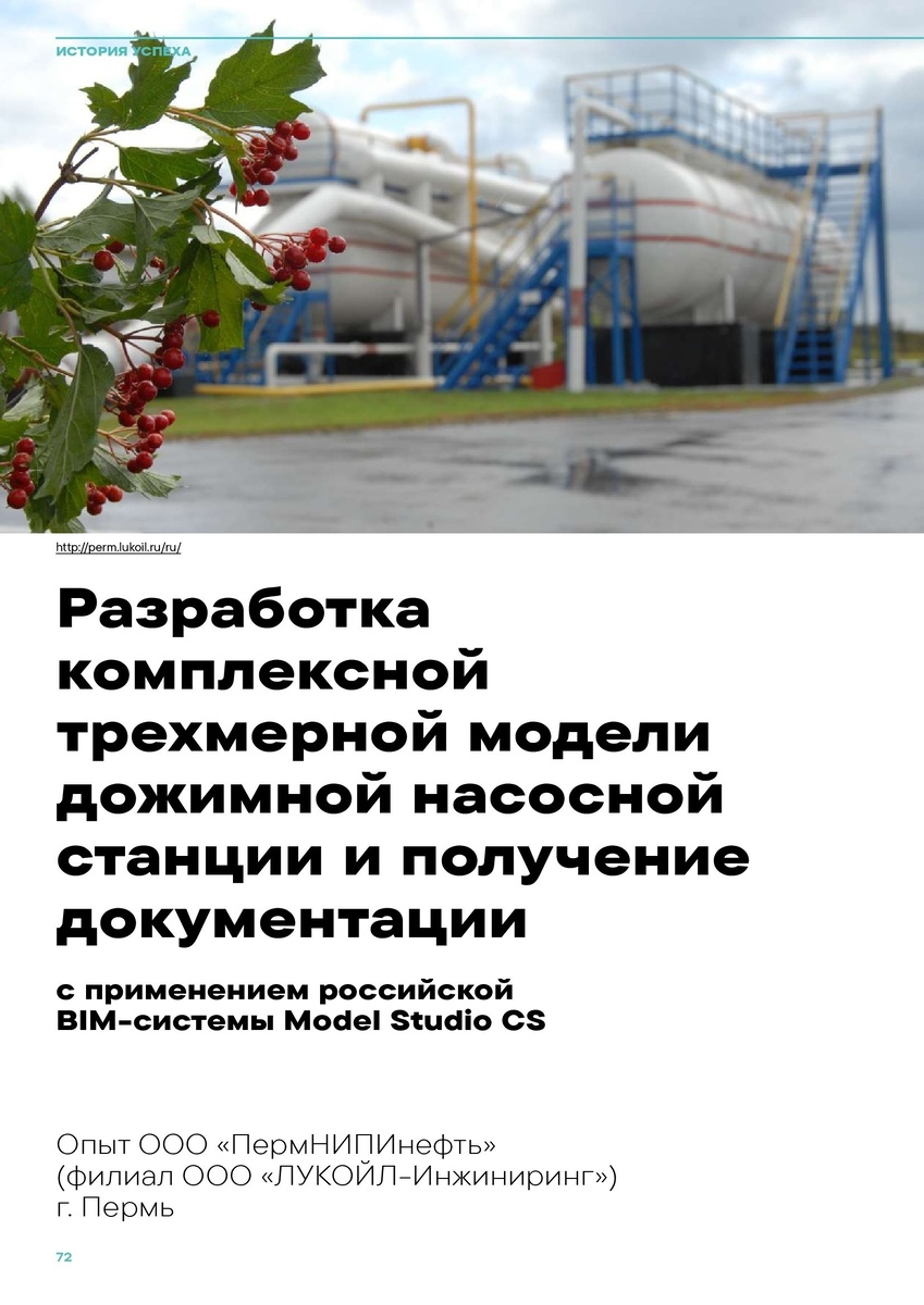 Разработка комплексной трехмерной модели дожимной насосной станции и получение документации с применением BIM-системы Model Studio CS