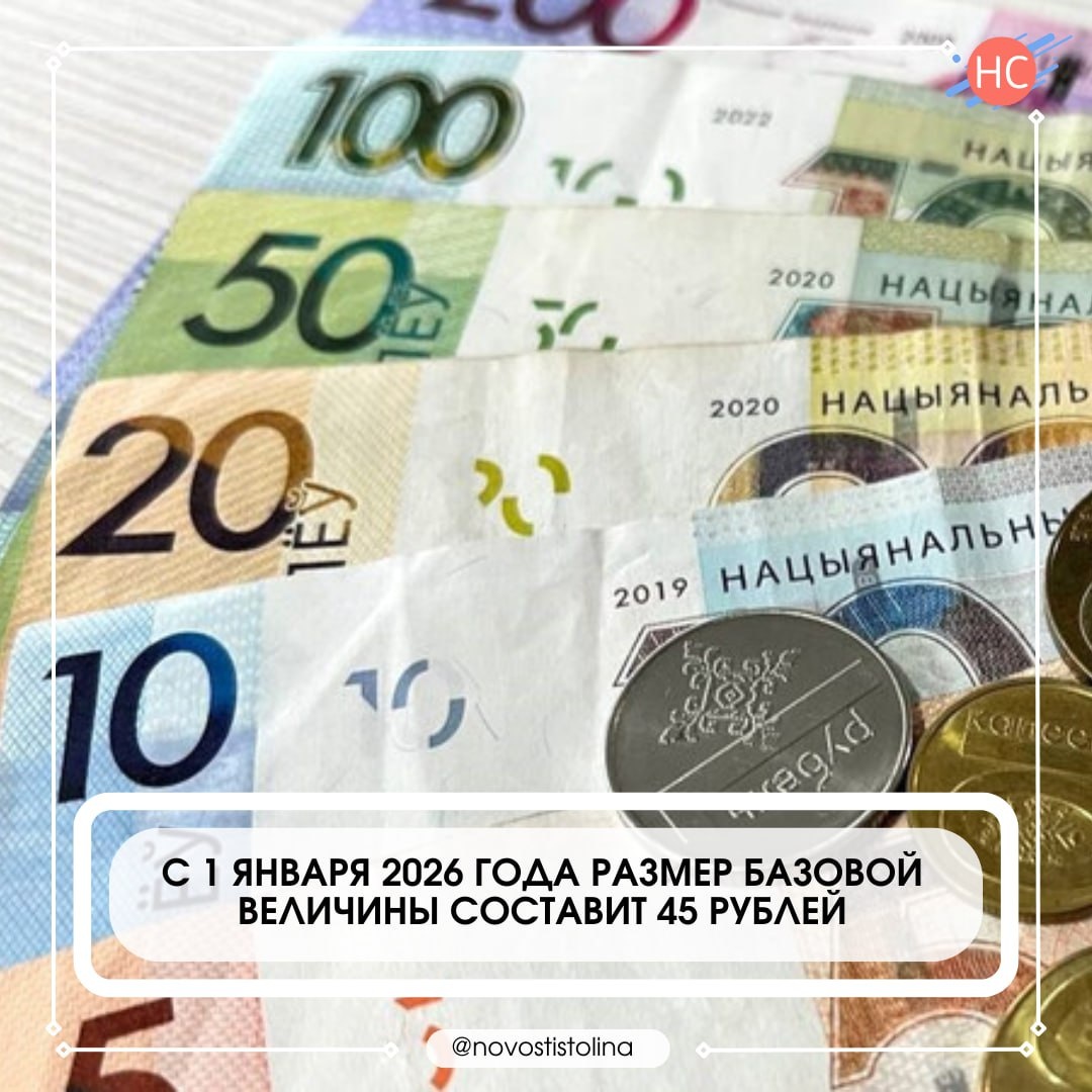 Напомним, в 2025 году базовая величина установлена в размере 42 рублей. «Изменение базовой величины окажет влияние на увеличение размеров ряда социальных выплат (пособия, стипендии, материальная помощь и иные), а также на поступление отдельных платежей в бюджет (госпошлина, штрафы, иные платежи)», - прокомментировали в тг-канале Правительства Беларуси.