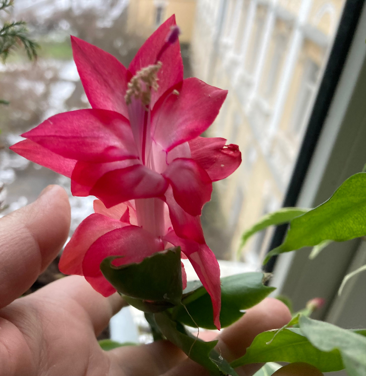 Самый маленький расцвел, а большие кусты не цветут почему-то. А этот я вырастила сама, взяла прошлой зимой в больнице в Колпино маленький отросток от стебля, пару листиков буквально и поставила в воду, весной появились корни, и я посадила декабрист в горшочек. Он так медленно рос. И вдруг неожиданно зацвел. А старые мощные кусты декабриста в больших горшках сидят зеленеют, но не цветут, в чем дело?