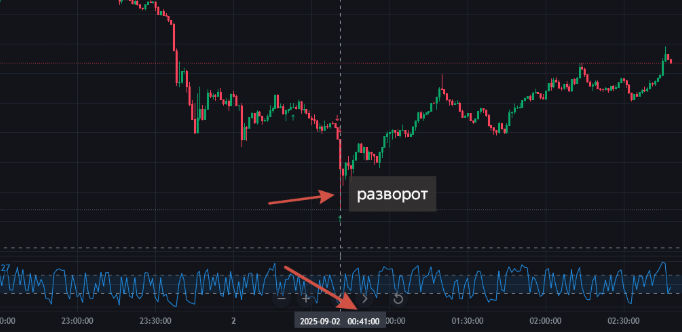 4. Точка входа: Входите в сделку после подтверждения разворота.