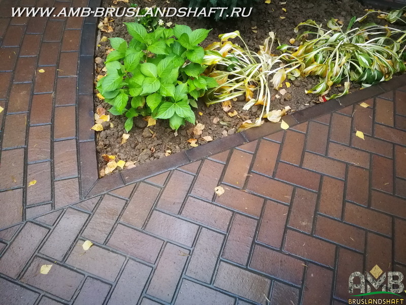 Примыкание брусчатки с ландшафтом, ровно или ниже Какое должно быть примыкание брусчатки с газоном Высота бордюра и земли Высота брусчатки с бордюрам ровно или выше Установка бордюров и укладка брусчатки должны быть на одном уровне. Например, если у вас бордюр будет установлен выше мощения, то в таком случае на вашем мощении будут застои воды. Отметка краев будет доходить до уровня бордюра и по всей плоскости мощения. Если у мощения заданы уклоны, то объем воды будет стоять на градусе мощения. В таком случае вода будет стоять только вдоль краев бордюра. Если бордюр сделан ниже уровня брусчатки, будет полностью нарушена эстетика примыкания бордюра с брусчаткой. Края, подрезанной, торчащей брусчатки будут выглядеть недоделанной работой и создавать не эстетичный вид, что психологически из года в год будет вас раздражать. С психологическим дефектом мощения вы можете ознакомиться в нашей терминологии.