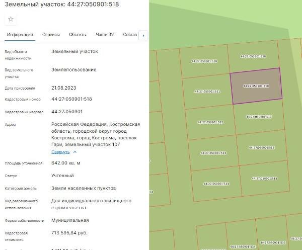 Название: Продажа земельного участка с кадастровым номером 44:27:050901:518, расположенного по адресу: город Кострома, поселок Гари