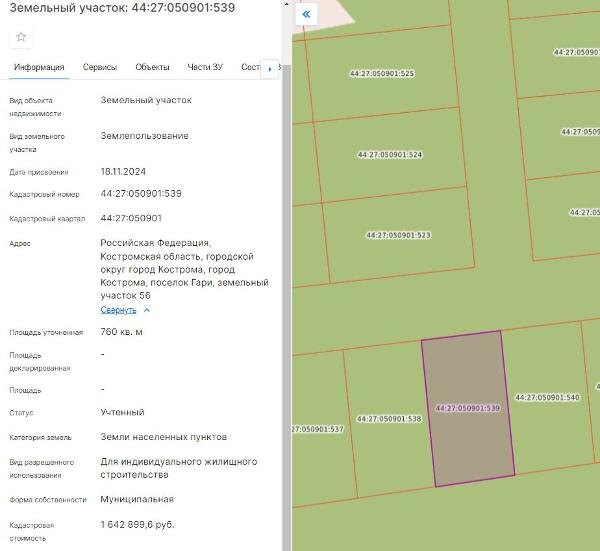 Название: Продажа земельного участка с кадастровым номером 44:27:050901:539, расположенного по адресу: город Кострома, поселок Гари