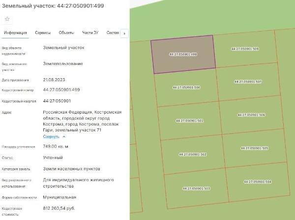Название: Продажа земельного участка с кадастровым номером 44:27:050901:499 расположенного по адресу: город Кострома, поселок Гари