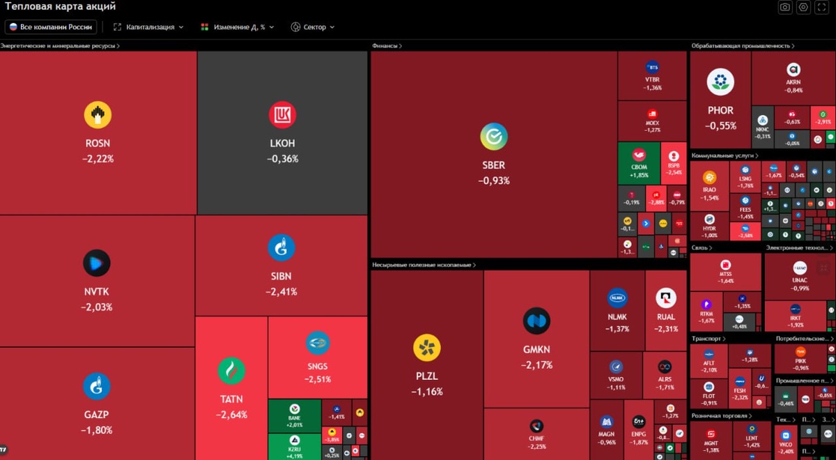 🏦 Новостей хороших сегодня нет, ожидание обсуждения мирного плана переносятся на следующую неделю. Внешний фон плохой - зарубежные индексы в красной зоне до сих пор, сырье тоже в красной зоне. 📣 Новостной фон на текущую минуту: 🏠 В Кремле не разделяют «оптимистичного настроя» по поводу подписания Зеленским соглашения США — Газета ру ❗️ Песков: ©️Официально Кремль не получал план мирного урегулирования по Украине ©️Киев должен прямо сейчас принять ответственное решение о мирном урегулировании, потом будет поздно ©️Россия открыта для диалога на платформе тех обсуждений, которые имели место в Анкоридже ©️Кремль хочет, чтобы переговоры по Украине увенчались успехом, поэтому не будет вести их в «мегафонном режиме» ©️Эффективная работа российской армии должна убедить Киев, что лучше договариваться и делать это сейчас, нежели позже ©️Встреча Путина и Трампа нужна, но ей предшествует большая работа 🏠 Диалог РФ и США не прерывается, но пока продвижения недостаточно для обсуждения страте