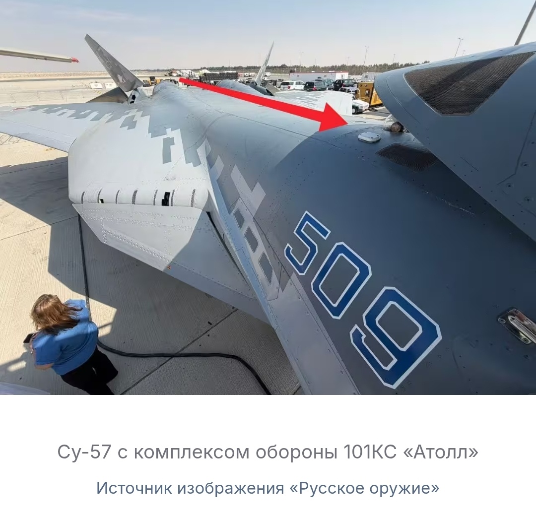 Российский истребитель пятого поколения Су-57 продолжает эволюционировать, и эксперты обнаружили новые детали на летном прототипе с индексом Т-50-9. Особый интерес специалистов вызвала уникальная система активной защиты, которая может кардинально изменить подход к противовоздушной обороне. За кабиной пилота размещен турельный лазерно-лучевой модуль 101КС-О, входящий в состав перспективного комплекса обороны "Атолл". Этот элемент представляет собой не просто дополнение к стандартным средствам РЭБ, а принципиально новое оружие, способное физически уничтожать приближающиеся ракеты. Система работает по сложному алгоритму: ультрафиолетовые датчики 101КС-У/01 и 101КС-У/02, распределенные по всему планеру самолета, образуют шестиэлементную апертуру, которая непрерывно сканирует воздушное пространство вокруг истребителя. При обнаружении пуска ракеты система за доли секунды вычисляет траекторию угрозы и направляет на нее высокоточный лазерный импульс. Особенность модуля 101КС-О заключается