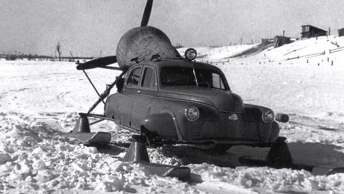 26 ноября 1959 года впервые на заснеженные трассы вышли девять экземпляров аэросаней «Север». Разработка необычной машины осуществлялась в опытно-конструкторском бюро, которое возглавлял Николай Ильич Камов. В том момент инженеры трудились над многоцелевым вертолетом Ка-18, так что создание аэросаней оказалось для них эдакой «побочкой». Согласно техническому заданию, машина должна была перевозить полтонны груза по снегу глубиной до 300 миллиметров со скорость 40 км/ч. При этом для сборки требовалось применять узлы уже существующих серийных автомобилей, вертолетов или самолетов. Техническое решение нашлось оригинальное. Конструкция базировалась на кузове ГАЗ-М20 «Победа». Помимо корпуса от автомобиля взяли рулевое управление, переднюю подвеску и сиденья. Капот «Победы» переделали под багажник для складирования почты. От вертолета Ка-15 достались стойки амортизаторов задних лыж. От самолета Як-12 – жалюзи охлаждения мотора. Изначально планировали использовать форсированный авиационн