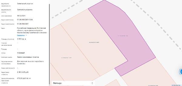 Название: Земельный участок, категория земель - земли населенных пунктов, кадастровый номер 61:26:0020301:1384 площадью 3500 кв.м