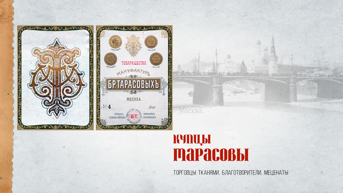 Тарасовы были крупными поставщиками ваты и сукна на московский рынок. Представители этой семьи относились к «черкесогаям», или кубанским армянам. В начале XIX века основатель купеческой династии Торос Торосян переехал в селение Армавир Кубанской области. Местные чиновники русифицировали его имя, поэтому в истории предприниматель более известен как Аслан Тарасов. В 1839 году он открыл свою первую лавку, где торговал «красным товаром» — различными тканями. Аслан Тарасов был человеком честным и не завышал цен, чем постоянно привлекал новых покупателей в лице русских торговцев из разных губерний страны и армянских купцов с юга. Личные качества помогли ему занять должность сельского почетного судьи, которую он сохранял за собой до конца жизни.