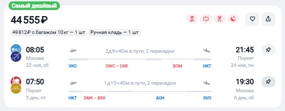 ✈️Москва - Пхукет (Таиланд), в обе стороны с пересадками за 44550 рублей 22 ноября - 5 декабря - https://checkintime.ru/ucwm 🏖 Поиск туров | ✈️Авиабилеты