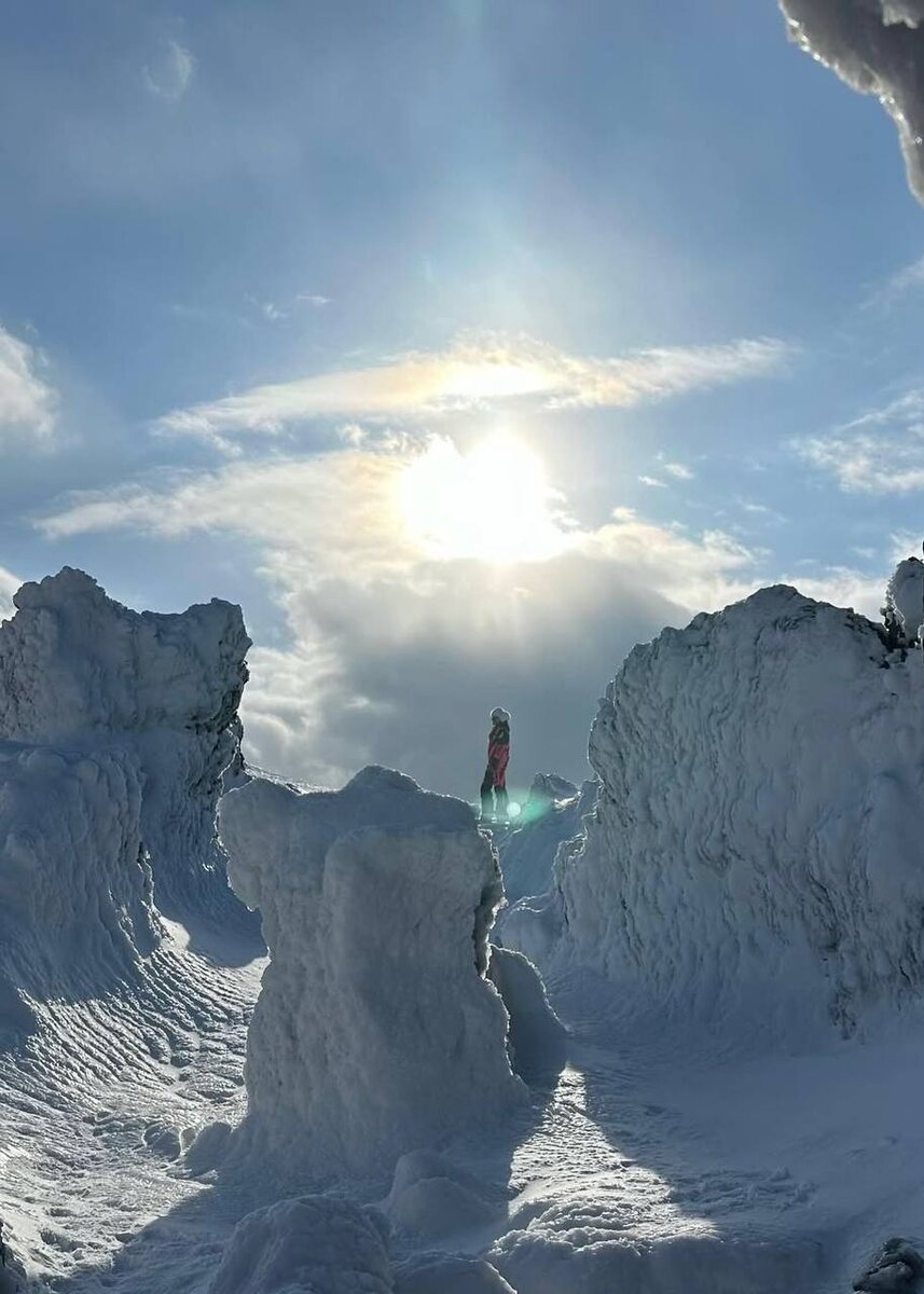 🇷🇺Какая зима на Сахалине? 1️⃣ К середине зимы снега на Сахалине обычно около 1,5 метра. А в горах и заносах ветер может намести такие сугробы, что они достигают 5–15 метров. Тут слово «сугроб» — это почти комплимент. 2️⃣ Зима на Сахалине долгая: примерно 6,5–7 месяцев — с конца октября до середины мая. В году бывает около 140 дней со снегопадами, то есть почти через день идёт снег. И это по всему острову, не только на юге. 3️⃣ За год на Сахалине почти 2000 солнечных часов. Зимой — примерно 3–3,5 часа солнца в день. Но эти лучи особенно приятные: нежные рассветы, красивые закаты и мягкий свет над сопками. 4️⃣ Зимняя рыбалка здесь отличная — её любят и местные, и туристы. 5️⃣ В январе в Южно-Сахалинске днём обычно −7…−8 °C, ночью −14…−17 °C. Такая погода даёт всё, что нужно для зимних радостей: снег хрустит, дыхание превращается в пар, можно кататься на лыжах и ходить в горы. Клещей нет, медведи спят, снега много. 📆30 декабря – 5 января летим отмечать Новый год на Сахалине В про
