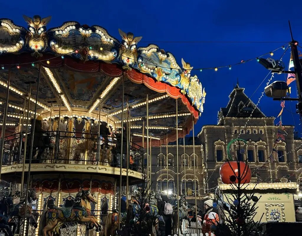 Красная площадь, безусловно, занимает центральное место в праздничной программе. Здесь разворачивается масштабная ярмарка, где можно покататься на ретро-карусели, купить сувениры ручной работы, насладиться традиционными русскими угощениями и горячим какао. ГУМ удивляет роскошными витринами, а каток на Красной площади так и манит к себе на лед.