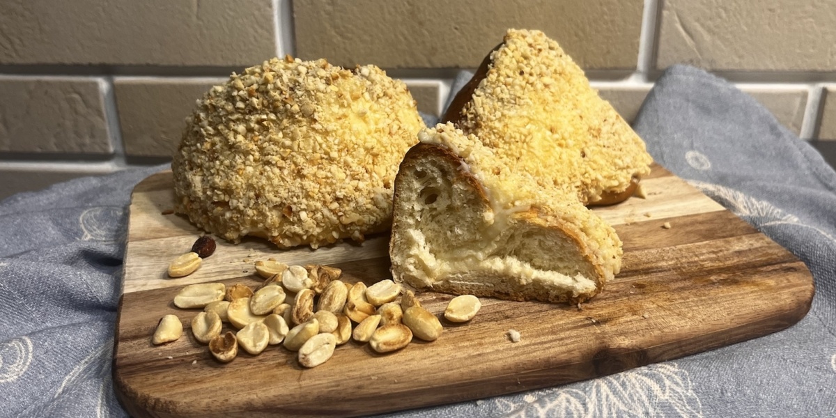 Сверху — хрустящий арахис, и получается идеальное сочетание: мягкость + кремовость + лёгкий ореховый щелчок. Булочки получаются настолько нежными, что их реально хочется трогать кончиками пальцев, чтобы не помять. Но они исчезают быстрее, чем остывают! Подогреваю молоко до тёплого состояния, растворяю дрожжи. Добавляю чайную ложку сахара и пару ложек муки. Перемешиваю, накрываю полотенцем и оставляю на 15 минут — опара должна «ожить» и подняться. Растапливаю сливочное масло и даю чуть остыть.