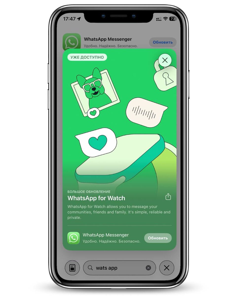 Обновите приложение WhatsApp в AppStore и оно появится в списке приложений в Watch В результате вы сможете просматривать историю всех переписок, а также отвечать и отправлять сообщения Общаться с часов тоже можно. Голосом или через клавиатуру - для часов где она доступна Вы уже обновили WhatsApp для Apple Watch?