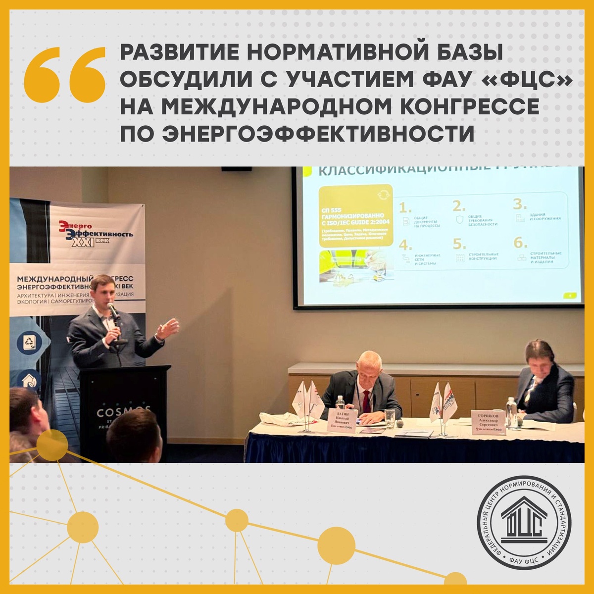 ⚡️ Секция «Строительная теплофизика и возобновляемые источники энергии» состоялась в рамках XХIV Международного конгресса «Энергоэффективность. XXI век» 20 ноября в Санкт-Петербурге. 🤝 В мероприятии приняли участие представители федеральных органов власти, научно-исследовательских организаций, экспертного и бизнес-сообществ. 🇷🇺 Главный специалист Управления нормирования и стандартизации в строительстве ФАУ «ФЦС» Дмитрий Кирушок выступил с докладом о развитии параметрического метода нормирования и систематизации нормативной базы, в том числе в части требований к тепловой защите зданий и сооружений. 📄 Спикер отметил, что СП 555 «Система нормативных документов в строительстве. Основные положения» впервые за 30 лет закрепляет единую трехуровневую систему нормативных документов, определяет объекты нормирования и иерархию требований, включая требования к тепловой защите. ❗️Напомним, что ФАУ «ФЦС» под руководством Минстроя России участвует в реализации задач национального проекта «Инф
