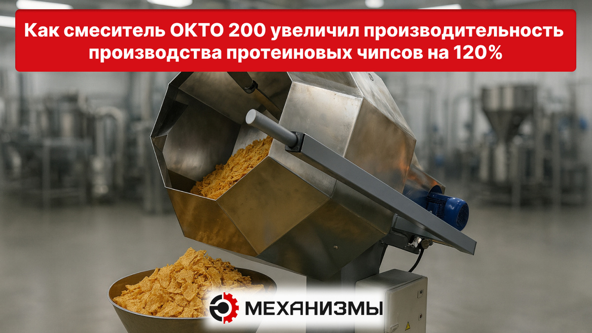 Кейс со смесителем ОКТО 200 показывает: грамотная автоматизация — это не расходы, а инвестиция в производительность. Благодаря точному смешиванию, ускорению циклов и интеграции системы жидкого впрыска клиент смог увеличить выпуск протеиновых чипсов на 120% и вывести продукт на стабильное качество.