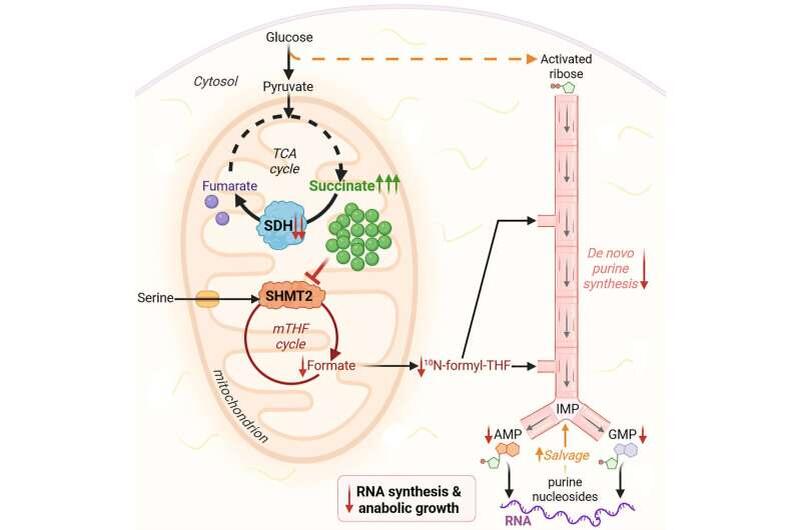 Учёные из Северо-Западного университета (Northwestern University) обнаружили ранее неизвестный механизм метаболической адаптации, который позволяет раковым клеткам продолжать строить ДНК, даже когда основной путь пуринового синтеза заблокирован. Исследование опубликовано в журнале Molecular Cell. Работу возглавил профессор клеточного метаболизма Иссам Бен-Сахра (Issam Ben-Sahra). В центре исследования — фермент сукцинатдегидрогеназа (SDH), часть митохондриального энергетического комплекса. После подавления SDH (CRISPR-Cas9 и химические ингибиторы) исследователи выявили: Клетка теряет способность строить ДНК — но раковые клетки умеют переключаться на «резерв». Опухолевые клетки активируют пуриновый сальвационный путь, который позволяет: Бен-Сахра поясняет: «Одновременная блокада SDH и сальвационного пути фактически лишает клетку возможности строить ДНК. Это ахиллесова пята опухоли». В экспериментах на клетках и мышах комбинированная блокада: Исследователи подчёркивают: