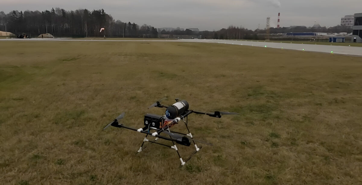 Мультироторная платформа с бортовой водородной энергоустановкой (топливный элемент 1,7 кВт, композитный баллон 350 атм, буферный 12S-пакет) показала время висения порядка двух часов при температуре около −1 °C.
