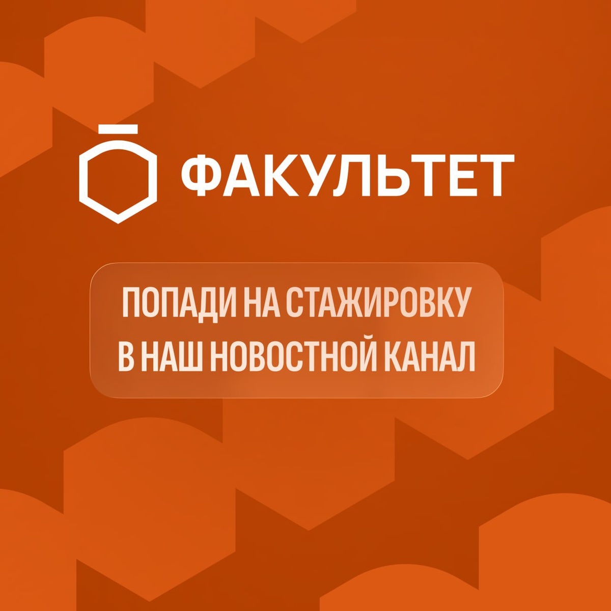⚡️ Стажировка в «Факультет» — открыта! Сегодня мы открываем новую возможность для студентов «Факультет Старт» — стажировку в нашей команде. Мы поделимся с тобой концепцией нашего проекта, расскажем, как мы позиционируем себя в медиапространстве и дадим тебе возможность войти в команду, которая ведет наш новостной канал — @fchr_news 🟠 Что даст тебе стажировка в «Факультете»: — онбординг и обучение от всей нашей команды; — опыт (даже если он первый) в SMM: научим подбирать инфоповоды, выстраивать сторителлинг проекта в соцсетях, проводить розыгрыши в канале; — погружение за кулисы нашего проекта; — веселые созвоны вечером в понедельник — ты даже не представляешь, насколько тебя затянет; — рекомендательное письмо по итогам и шанс получить оффер в штат при успешном прохождении. 🟠 Стажировку в «Факультете» можно пройти из любой точки мира — важно лишь наличие интернета и желание научиться новому ремеслу. Чтобы сделать первый шаг в спорт и поучаствовать в отборе к нам на стажировку, н