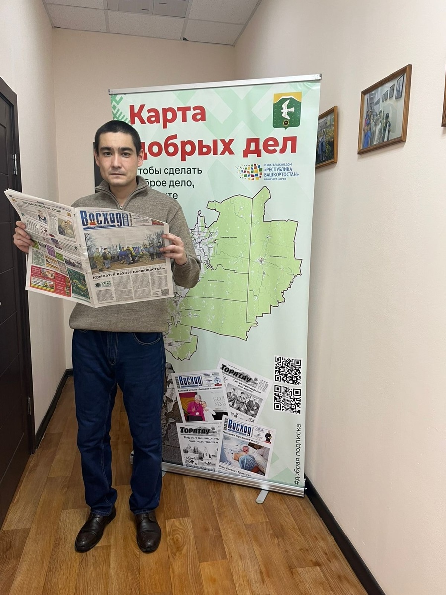 У акции появился ещё один участник — человек, который ценит простые вещи, проверенные временем. Линар Хамитов, наш земляк и боец СВО, приехавший в недавний отпуск, рассказал: на передовой особенно ясно понимаешь цену связи с домом. Там, где каждый день пахнет порохом и землёй, даже короткая весточка из мирной жизни звучит как тихий колокольчик надежды. «Когда находишься вдали, — говорит Линар, — понимаешь: близким важно чувствовать, что о них помнят не только родные. Их поддержка держит нас, а нашу — держит забота общества». Именно поэтому он решил оформить «Добрую подписку» — выписал газету «Восход» для мамы бойца, погибшего на СВО. Линар признался: районная газета — это не просто листы бумаги. В каждом номере — новости, за которые люди крепко держатся; истории о наших ребятах, что служат на передовой; рассказы о семьях, которые ждут; о тех, кто собирает помощь, кто не остаётся в стороне. «Восход» — как спокойный голос родного города, который всегда рядом, даже если ты далеко. Хотите