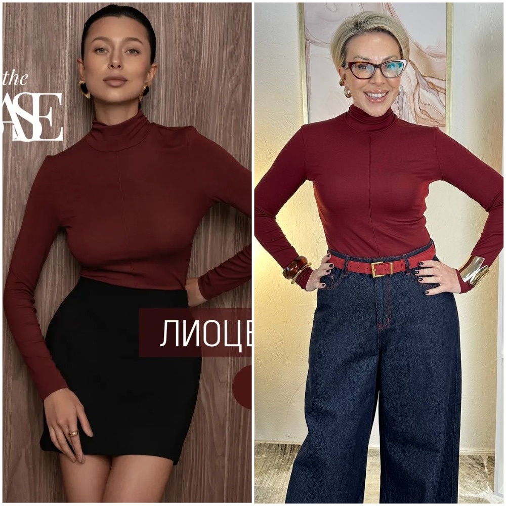 Здравствуйте, дорогие читатели! Меня зовут Ирина, я - стилист, и на этом канале показываю одежду и аксессуары с Wildberries такими, как они есть, то есть, из серии "ожидание/реальность". Мои параметры: рост 169 см, вес 67 кг, 94-74-100 ✅Основной канал: Стильно - не значит дорого! Ставьте лайк в поддержку канала, и давайте смотреть на мою сегодняшнюю покупку. Бордовая водолазка: утонченная база Тонкая водолазка как самостоятельный верх снова актуальна. Но стилизуем с более объемными низами и современными украшениями. А в качестве нижнего слоя — это просто палочка-выручалочка. Мне очень понравился насыщенный красивый цвет и вертикаль, которая классно вытягивает силуэт и добавляет образам изюминку. Эта модель в винном оттенке сочетает лаконичность кроя и качество материалов. Облегающий силуэт из лиоцелла со спандексом мягко облегает фигуру, создавая эффект второго слоя кожи. Драпированный воротник и вертикальная декоративная строчка добавляют модели изящные акценты. Гладкая фактура ткани