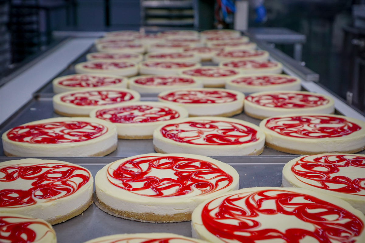 Главное таинство происходит в пекарном цехе. Здесь огромные чаны с творожным сыром, сметаной, меланжем, сахаром и мукой, пройдя все этапы замешивания, взбивания и выпечки, превращаются в ряды чизкейков, плавно скользящих по конвейеру. Готовят чизкейки в цеху «с нуля», даже песочное печенье для основы не покупают, а выпекают сами. Абсолютно все чизкейки и торты по готовности подвергаются шоковой заморозке. Это обеспечивает максимальную безопасность и сохранность продукта. К тому же в замороженном виде они могут храниться до 18 месяцев. И только потом отправляются на нарезку и фасовку на ленточном конвейере. Сыры для своих тортов Cheeseberry тоже до сих пор производит самостоятельно. Теперь для этого появился отдельный сыроварный цех. В сутки изготавливаются тонны сыров пяти видов: маскарпоне, творожный, кондитерский и совершенно уникальный, не десертного назначения — сушисыр. Большая часть производимого идет на продажу.