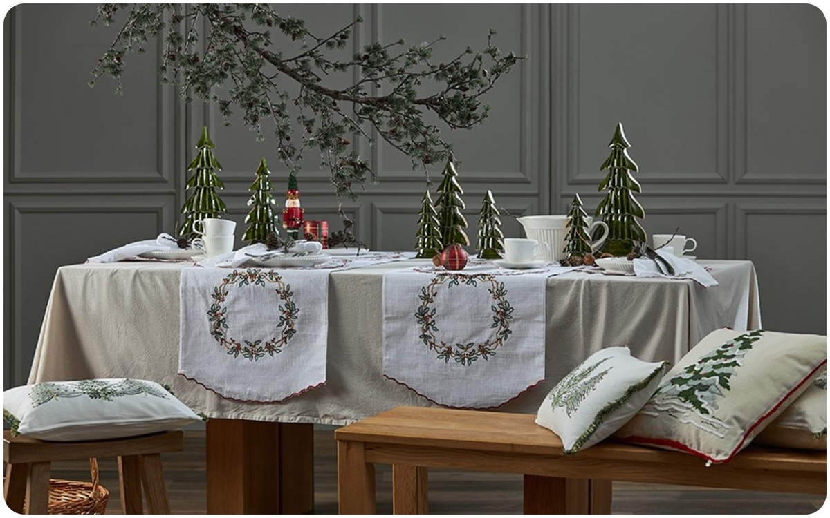 Подготовка к Новому году — это ритуал создания атмосферы, где каждый элемент играет свою роль. В 2026 году дизайнеры ставят на природные оттенки, матовые фактуры и текстиль, который делает сервировку тёплой и стильной. Правильно оформленный стол — визуальная прелюдия праздника. Он задаёт настроение вечера, объединяет гостей и превращает обычный ужин в волшебный момент. Скатерть, салфетки и дорожка — это то, с чего начинается новогодняя сервировка. Текстиль задаёт палитру, тональность и общее настроение. Совет: если в интерьере много нейтральных оттенков, выбирайте скатерть глубоко-зелёного или винного цвета. Она станет праздничным акцентом, но не перегрузит пространство. Интересный факт: дизайнеры отмечают, что текстиль влияет на восприятие блюда — натуральные ткани и спокойные оттенки пробуждают аппетит. На фото: Коллекция New Year Essential Новогодняя посуда — это не обязательно красно-золотая классика. В 2026 году в тренде: Такой декор смотрится элегантно и уместно как в празднично