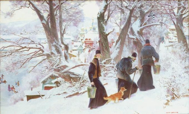 И еще одну важную науку должны были освоить новоначальные иноки — искусство общения с братией. Привыкая жить в монастыре, будущий монах должен был осознать себя самым недостойным и всех остальных почитать как святых. Встречая брата, он первый кланялся неразлененным поклоном и смиренно просил его святых молитв: «Благослови, господин, помяни меня в молитве своей к Богу». На это другой брат отвечал: «Бог да спасет тебя своей благодатью». При встрече с игуменом, по монастырским правилам, полагалось сделать земной поклон и потом, со страхом взирая на игумена как на Самого Христа, стоять и мысленно говорить Исусову молитву, пока игумен не пройдет. Разговаривать с игуменом, если тот сам не спросит, не разрешалось.