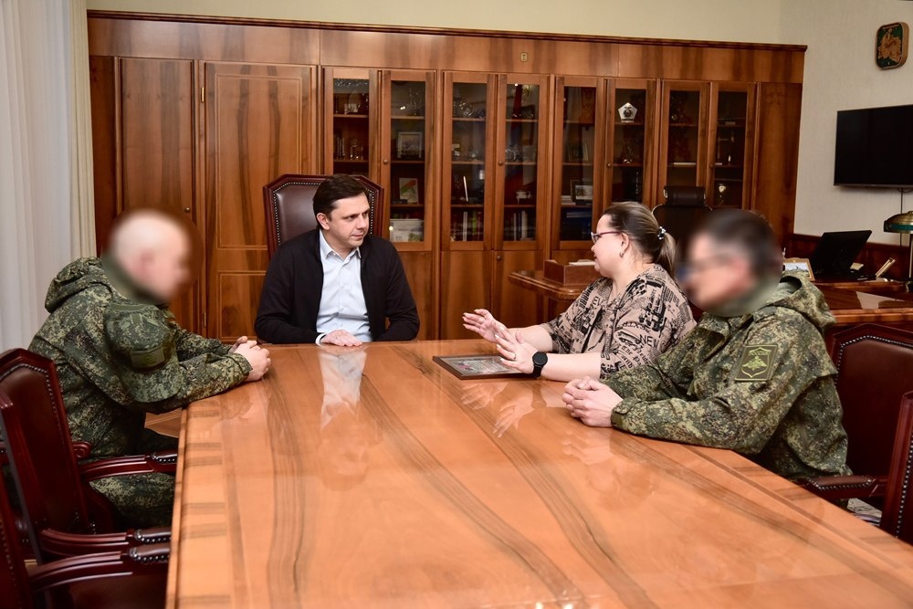 Орловский губернатор Андрей Клычков встретился с бойцами СВО. Парни находятся в Орле в краткосрочном отпуске. Подробности сообщает портал Правительства региона. Встреча прошла в кабинете у губернатора. «Всегда рад встрече с нашими защитниками не только на передовой, но и здесь, в Орле, пока ребята в отпуске. Один из бойцов – орловский, второй – из Мурманска. Служат на Купянском направлении, заехали поблагодарить за помощь. Не так давно сестра нашего земляка написала мне, что подразделению ее брата очень нужен детектор дронов «Булат». Разумеется, просьба оперативно была выполнена, как и десятки других запросов», – рассказал Губернатор. Из Орла бойцы заберут новый груз для своего подразделения: колеса для техники, продукты, средства гигиены. Гуманитарку помогла собрать администрация Орла. Андрей Клычков подчеркнул, что область и дальше будет оказывать всестороннюю помощь участникам СВО. Работа Орловского тыла продолжается. (Фото пресс-службы губернатора Орловской области) @Perviy_