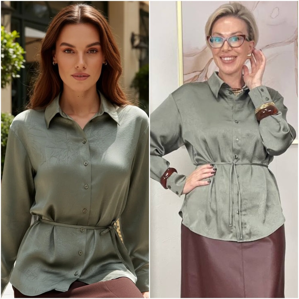 Здравствуйте, дорогие читатели! Меня зовут Ирина, я - стилист, и на этом канале показываю одежду и аксессуары с Wildberries такими, как они есть, то есть, из серии "ожидание/реальность". Мои параметры: рост 169 см, вес 67 кг, 94-74-100 ✅Основной канал: Стильно - не значит дорого! Ставьте лайк в поддержку канала, и давайте смотреть на мою сегодняшнюю покупку. Оливковая рубашка: сдержанный шик Эта модель в оттенке хаки сочетает элегантность кроя и практичность материалов. Прямой силуэт из полиэстера с атласным блеском создает эффект дорогой ткани, сохраняя функциональность. Воротник-стойка и застежка на пуговицы подчеркивают строгость линий, а удлиненная спинка добавляет современности. Материал с жатым эффектом обладает устойчивостью к сминанию, сохраняя опрятный вид в течение дня. Манжеты на рукавах и тонкий пояс в комплекте позволяют варьировать силуэт от строгого до более расслабленного. Качество исполнения проявляется в аккуратной строчке и ровной посадке. Рубашка демонстрирует редку