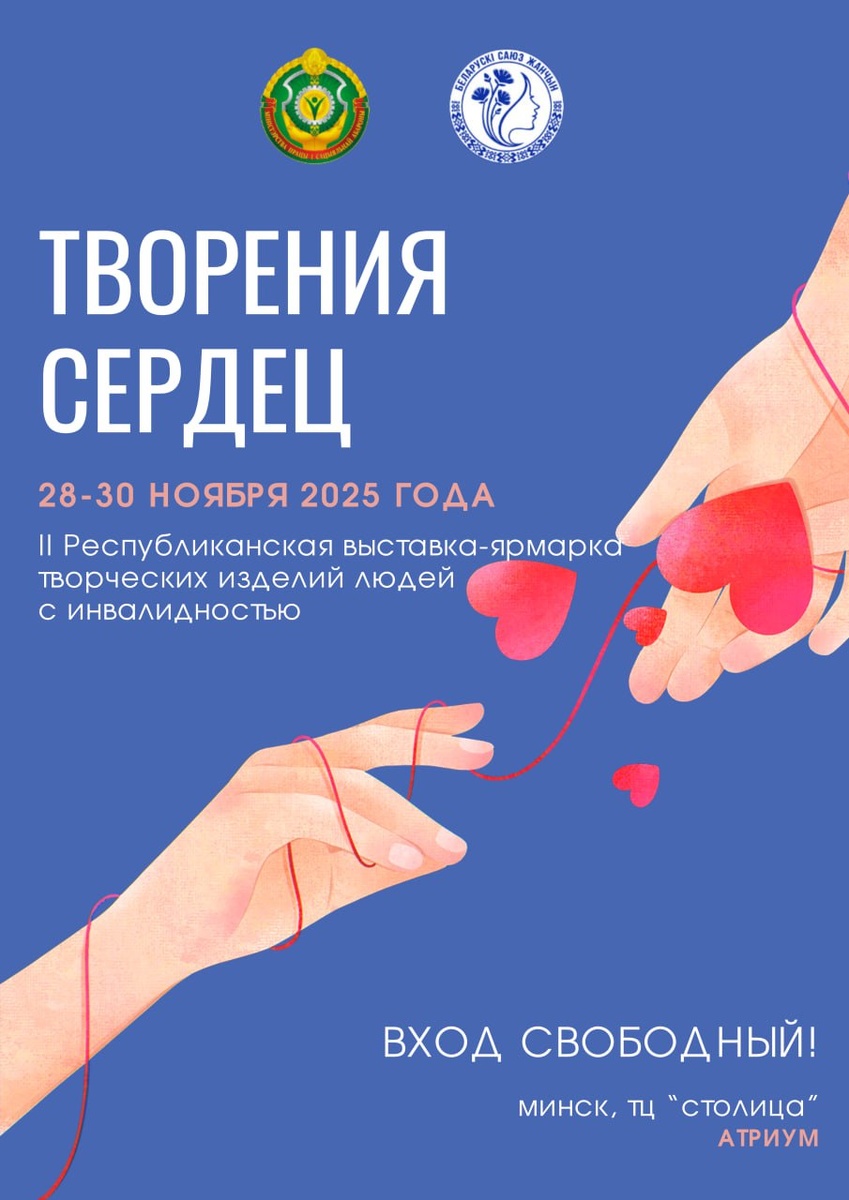 🎨 В Минске пройдет II Республиканская выставка-ярмарка «Творения сердец» Министерство труда и социальной защиты и Белорусский союз женщин с 28 по 30 ноября представят II Республиканскую выставку-ярмарку творческих изделий людей с инвалидностью «Творения сердец». ➡️Мероприятие, приуроченное ко Дню инвалидов, пройдет в торговом центре «Столица». 🧵🪡В этом году свои работы представят более 200 умельцев из реабилитационно-трудовых мастерских и кружков территориальных центров и социальных пансионатов со всей страны. Гости смогут приобрести уникальные швейные изделия, картины, керамику и предметы декоративно-прикладного искусства. 🎇 Для посетителей подготовлены интерактивные зоны с мастер-классами: ✅по рисованию и изготовлению изделий из гипса; ✅по 3D-моделированию; ✅росписи пряников в технике «Dot-art»; ✅созданию эко-свечей и авторских значков. 👀Также гостей ждет авторская методика «Незрячий живописец», аквагрим, инклюзивная кофейня и беспроигрышная лотерея. ➖➖➖➖➖ 🎇 Ждем вас на II Р
