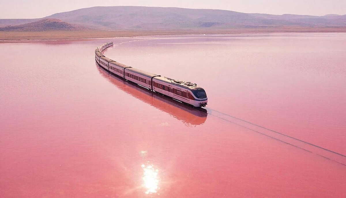 Возможно, в Сети вам попадались кадры с поездом, который ходит не по земле, а по розовому озеру. Выглядят они настолько живописно, что многие воспринимают фотографии за фейковые, ведь реализовать подобную идею не под силу даже самым опытным и талантливым инженерам. В этом случае скептики ошибаются, а кроме того идея создания уникальной технологии появилась ещё при Екатерине II. Узколинейный состав действительно ходит по рельсам, уложенным на дне Бурлинского озера в Алтайском крае, из-за чего кажется, что поезд-амфибия плывёт по воде. В реальности же это обычный промышленный состав и солекомбайн. Так что прокатиться на единственном в мире водном локомотиве удастся далеко не каждому. Машина зачерпывает соль и подаёт её в прицепы, которые затем доставляют груз на берегной завод. Благодаря малой глубине (в среднем около метра) и плотности рапы создаётся эффект, будто рельсовая колея лежит прямо на воде. Зрелище завораживает особенно на закате: розовая вода, солёные лужи и на горизонте – «п