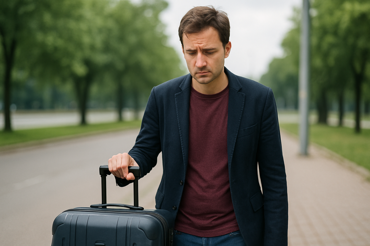 Он ехал в автобусе до родного города, прижимая к себе потрёпанный чемодан.