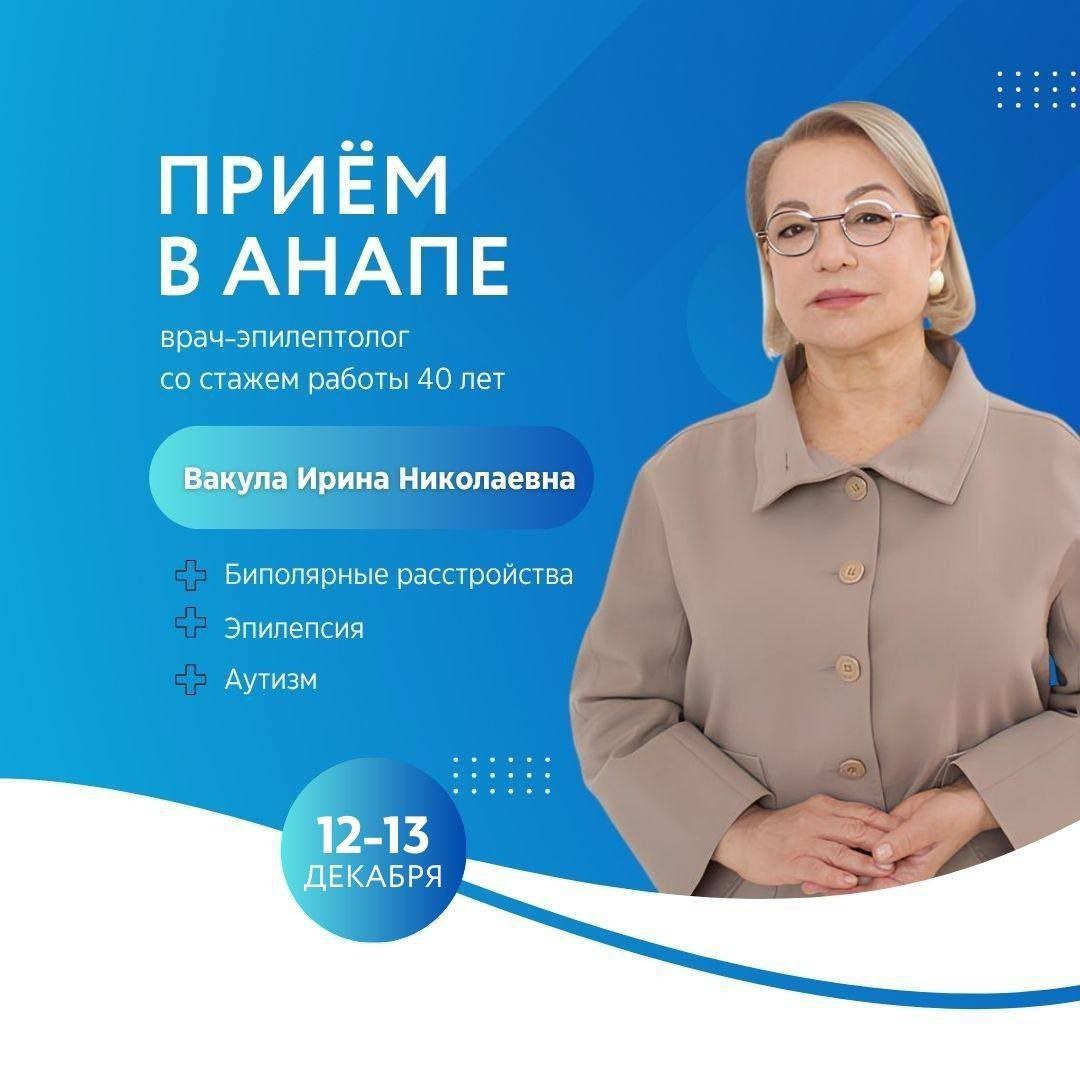В Лечебно-диагностическом центре ДиЛУЧ открыта запись на консультацию одного из сильных психиатров-эпилептологов региона — Ирины Николаевны Вакулы, кандидата медицинских наук. Это редкая возможность получить профессиональную оценку сложных случаев без поездки в Краснодар. 🔍 Ирина Николаевна работает с пациентами всех возрастов и помогает при состояниях, которые требуют глубокого анализа и большого опыта: • задержки речевого и психического развития; • расстройства аутистического спектра (РАС); • СДВГ; • эмоциональные и поведенческие нарушения у детей и подростков; • тревога, страхи, депрессии; • ОКР; • когнитивные нарушения у взрослых и пожилых людей; • возрастные изменения: лёгкая и умеренная деменция различного происхождения; • психотические состояния у детей и взрослых. 🌟 Количество мест ограничено — рекомендуем записываться заранее. 📅 Даты приёма: 12-13 декабря 📍 Адрес: ул. Пушкина, 16 📲 Запись: 8 800 301-12-96