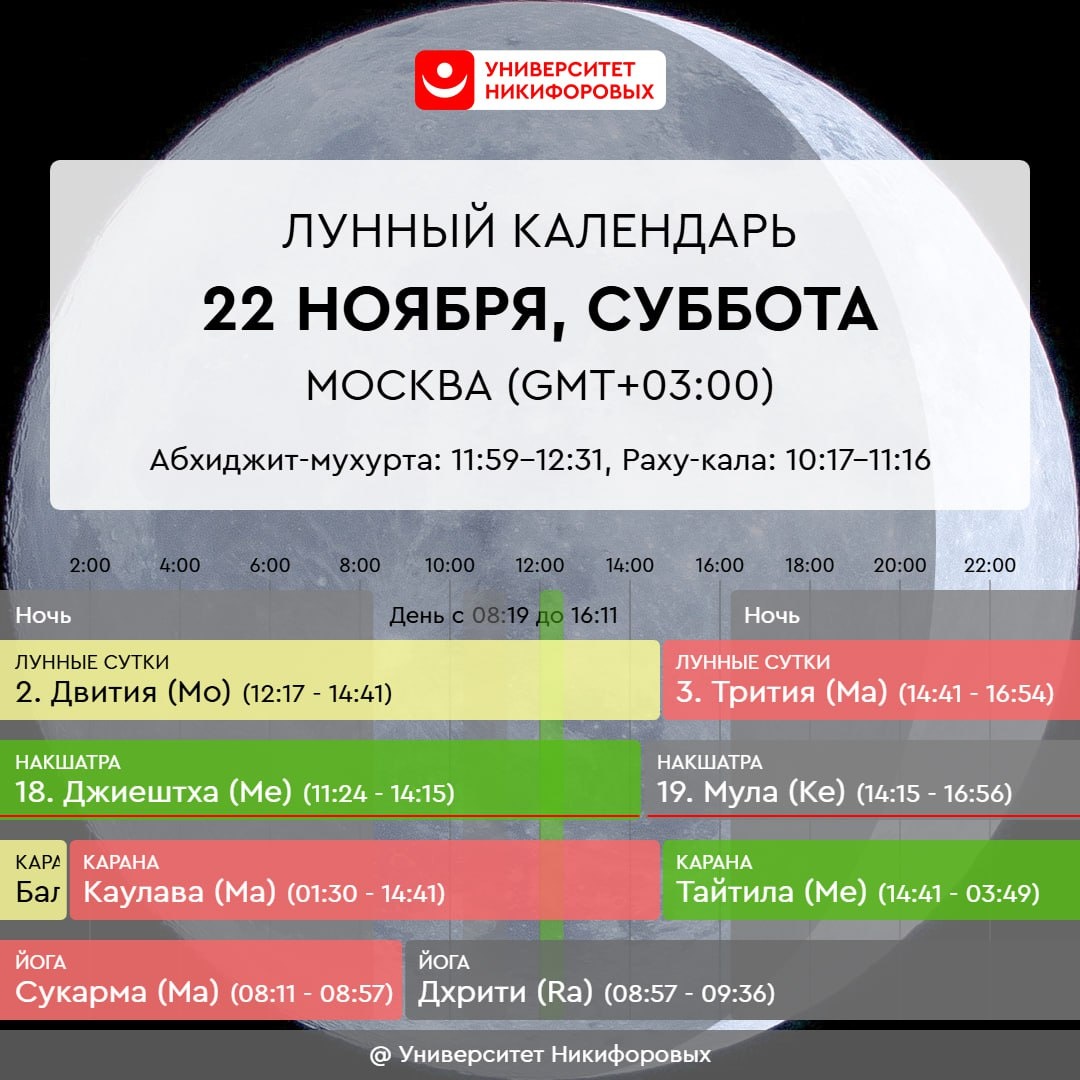22 НОЯБРЯ, СУББОТА Эмоциональный фон постепенно налаживается, и к вечеру становится уже более стабильным. Однако в течение дня все еще возможны перепады настроения, которые могут временами вызывать ощущение грусти или погружать в депрессивные состояния. Помните, что это временное явление, и постарайтесь поддерживать себя, фокусируясь на позитивных моментах и занимаясь тем, что приносит радость и облегчение. Сегодня день отлично подходит для обучения и расширения знаний. Время благоприятно как для углубленного изучения уже знакомых тем, так и для погружения в абсолютно новые области. Даже краткое время, посвященное обучению сегодня, может принести значительные результаты и параллельно с этим гармонизировать энергии этого дня. Также сегодня хорошо позаботиться о старшем поколении, проявив внимание и поддержку. Например, можно помочь им донести тяжёлые сумки или предложить оплатить покупку на кассе.