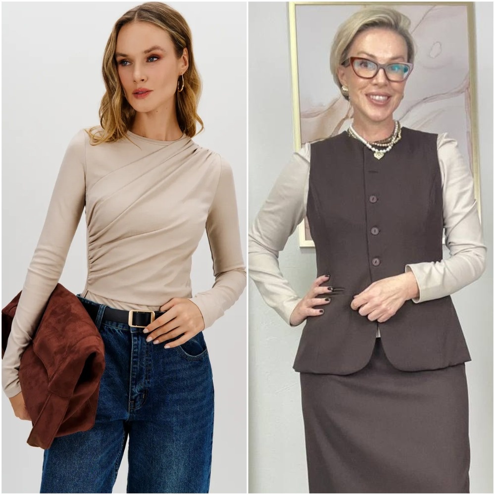 Здравствуйте, дорогие читатели! Меня зовут Ирина, я - стилист, и на этом канале показываю одежду и аксессуары с Wildberries такими, как они есть, то есть, из серии "ожидание/реальность". Мои параметры: рост 169 см, вес 67 кг, 94-74-100 ✅Основной канал: Стильно - не значит дорого! Ставьте лайк в поддержку канала, и давайте смотреть на мою сегодняшнюю покупку. Бежевый лонгслив с драпировкой: лаконичный шик Эта модель в бежевом оттенке сочетает облегающий крой и пластичную фактуру. Плотный трикотаж на основе вискозы с добавлением нейлона и лайкры мягко облегает фигуру, создавая эффект второго слоя кожи. Круглый вырез и длинные рукава подчеркивают сдержанность дизайна. Актуальная драпировка в области груди и талии добавляет динамики, визуально вытягивая силуэт. Материал обладает устойчивостью к сминанию, сохраняя опрятный вид в течение дня. Эластичность ткани обеспечивает свободу движений без деформации. Лонгслив демонстрирует редкую универсальность — он одинаково органичен с деловыми брюк
